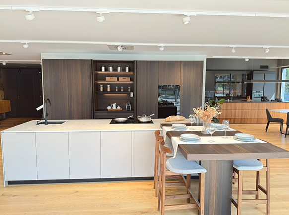 We’ve brought together 5 Santos kitchens featuring the latest innovations, all equipped with premium appliances from brands like Falmec, Asko, Dunavox, and Ilve.