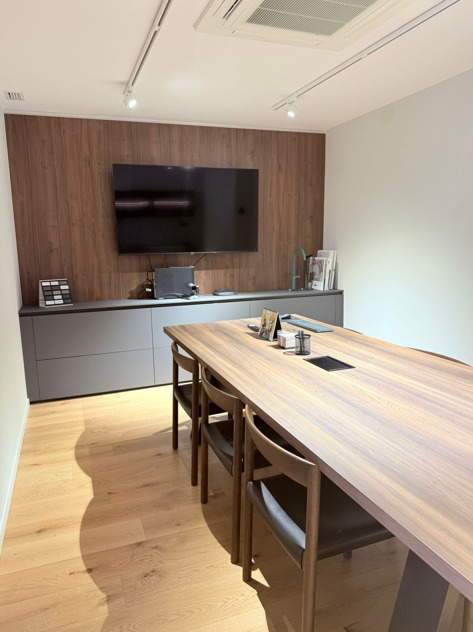The meeting room, with its 75” screen, is one of our favorite spots. This is where projects come to life: where we listen, propose, and build ideas together with our clients. A comfortable, welcoming space designed for making clear and unhurried decisions.